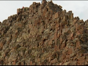 This is the catwalk; a narrow path towards the summit that is a straight fall on either side.